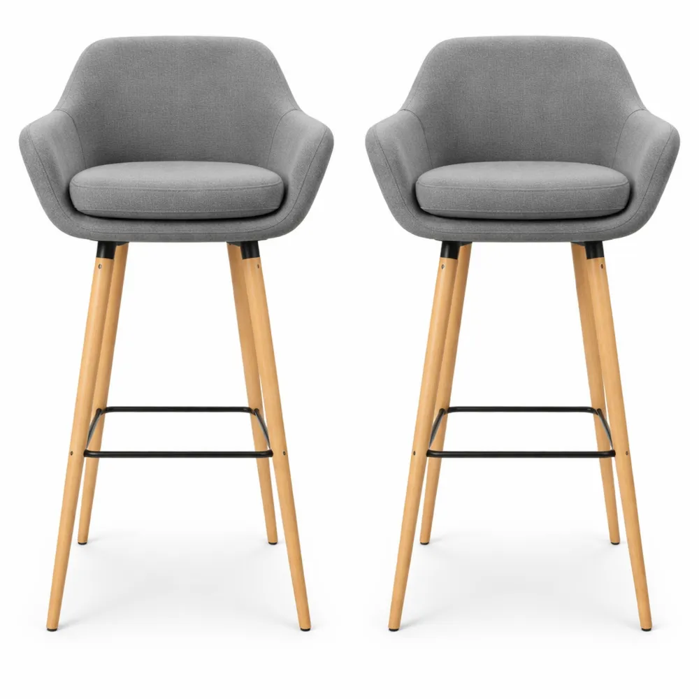 Set di 2 Sgabelli Alti con Schienale e Poggiapiedi, Stile Vintage in Tessuto per Cucina