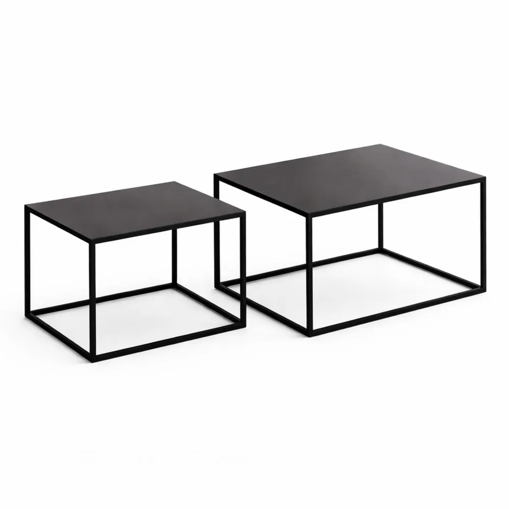 I tavoli in due altezze diverse sono adatti per ogni casa. Il set comprende due tavolini rettangolari con struttura stabile e superficie antigraffio. Le misure sono: tavolo 1: 35x45x35cm, tavolo 2: 30x40x30cm. Realizzati in metallo con una finitura nera opaca.