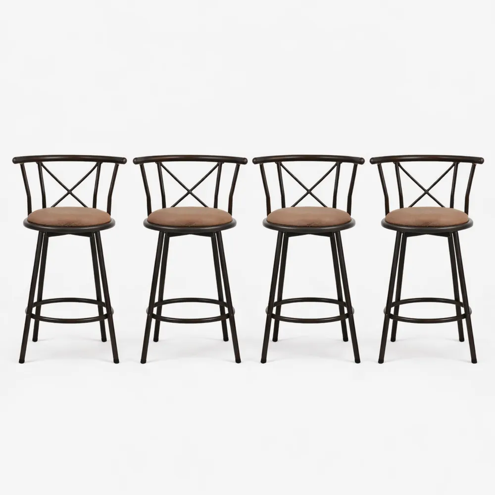 Sgabelli da cucina con sedile girevole a 360 gradi per flessibilità e facilità d'uso. Ampia seduta e poggiapiedi offrono comfort durante l'utilizzo. Lo schienale curvo segue la forma della schiena garantendo stabilità grazie al supporto in acciaio. Piedini antiscivolo proteggono i pavimenti. Con un'altezza di 63 cm, possono essere facilmente riposti sotto i banconi o utilizzati come sedie extra. Adatti a ristoranti, pub, caffetterie, terrazze e cucine. Stile moderno con struttura in metallo, perfetto per ambienti diversi. Imbottiti in schiuma e rivestiti per il massimo comfort. I poggiapiedi circolari aiutano a mantenere la postura corretta. Utilizzabili ovunque, si adattano a spazi ristretti e diverse altezze di tavolo.